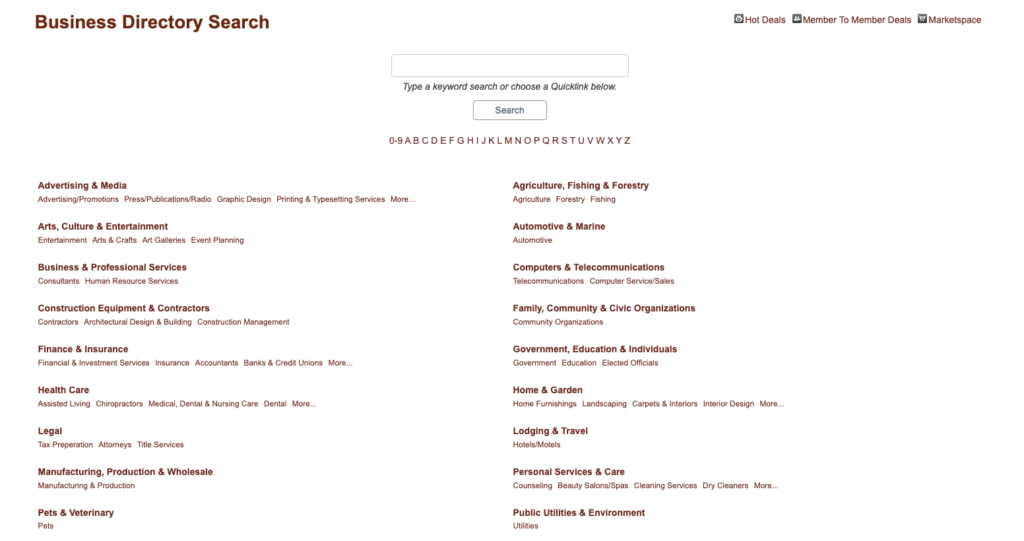 (This will be a Chambermaster page that pulls in your own member information and uses your own colors, not red.)